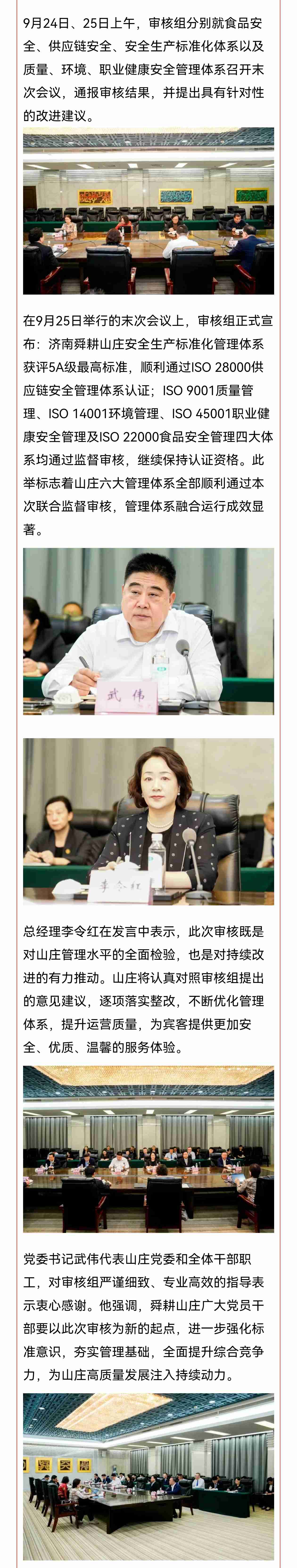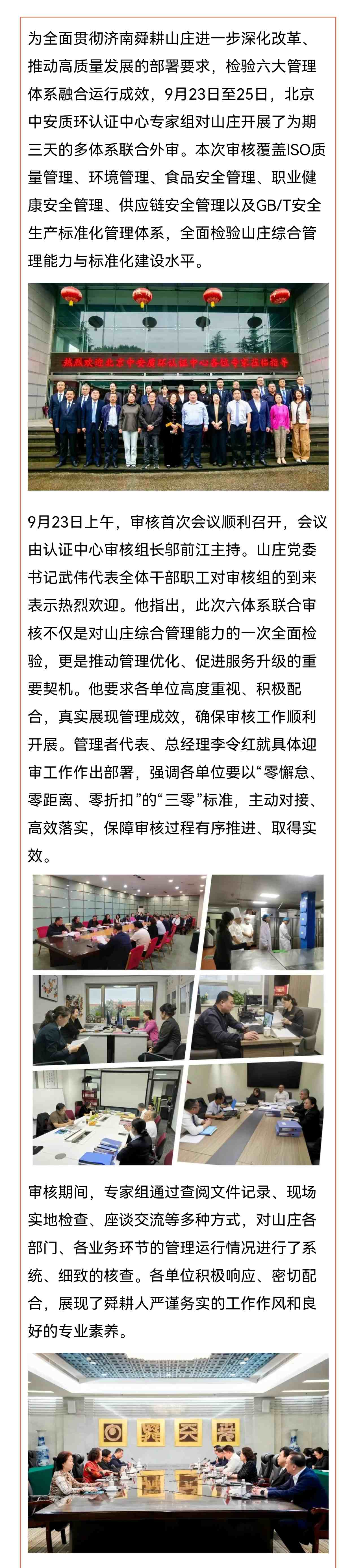 济南舜耕山庄顺利通过标准化多体系联合外审