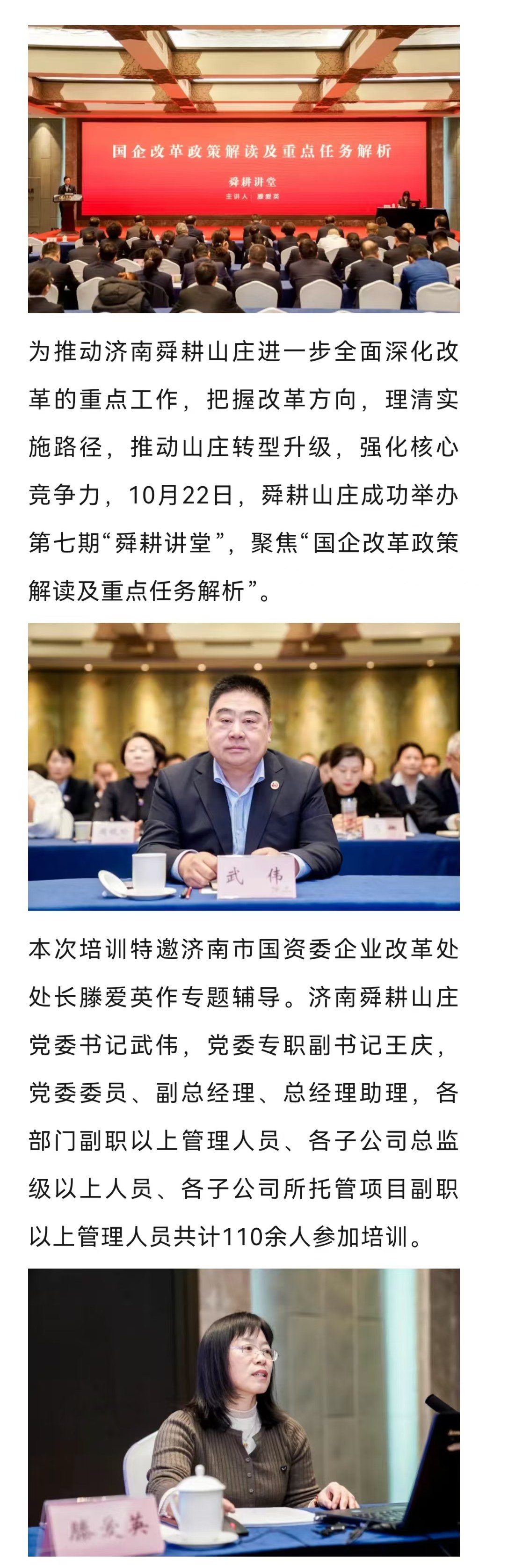 济南舜耕山庄举办“舜耕讲堂”专题讲座 深度解读国企改革政策与重点任务