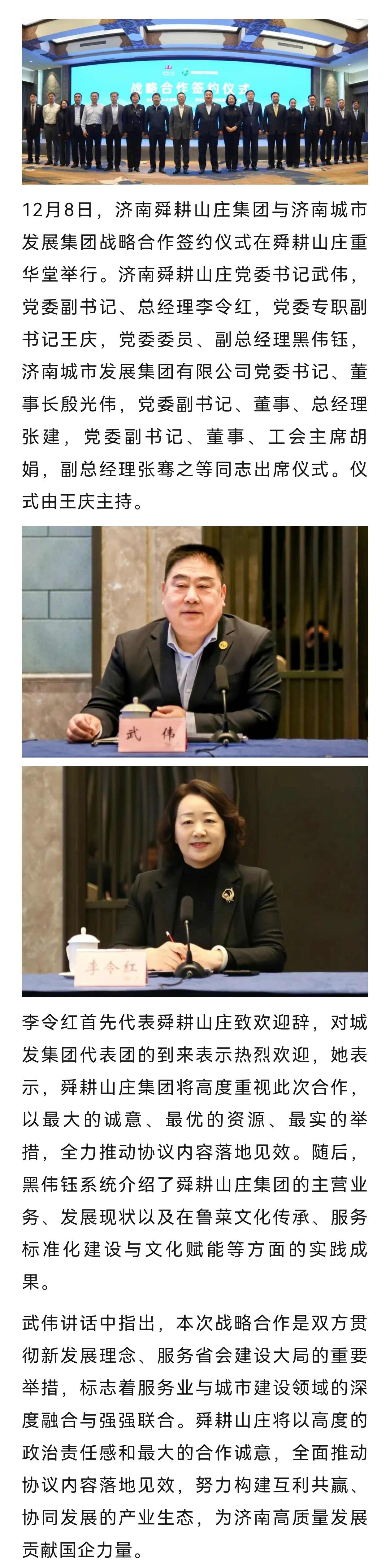 济南舜耕山庄集团与济南城市发展集团举行战略合作签约仪式